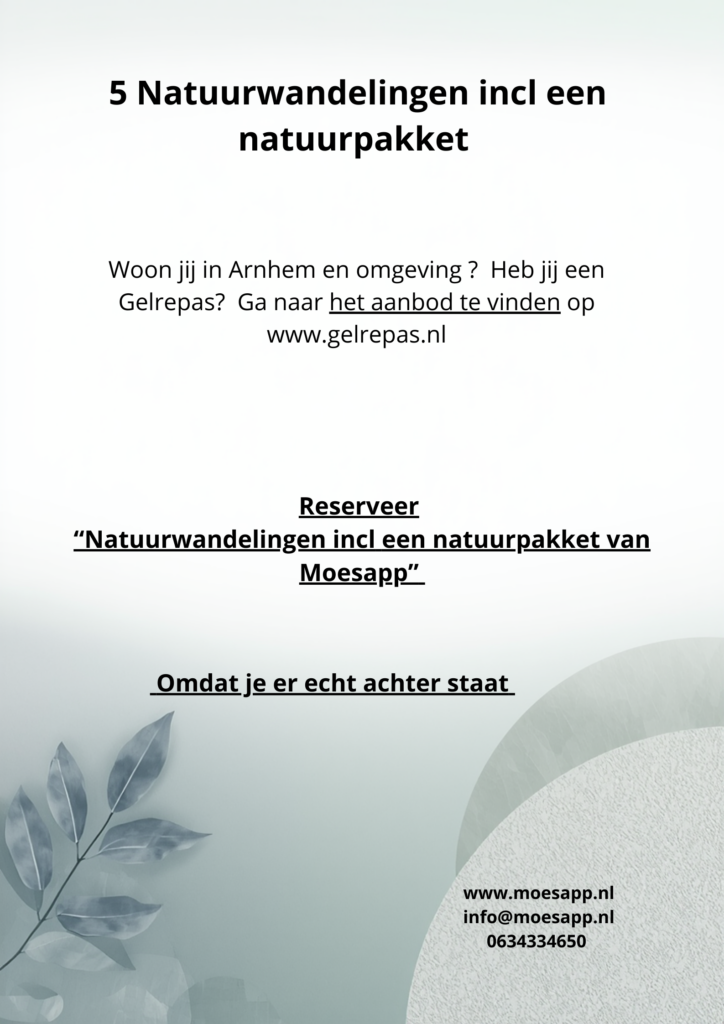 Reserveer natuurwandelingen incl een natuurpakket van MoesApp. Zodra wij reservering hebben ontvangen nemen wij contact met je op.