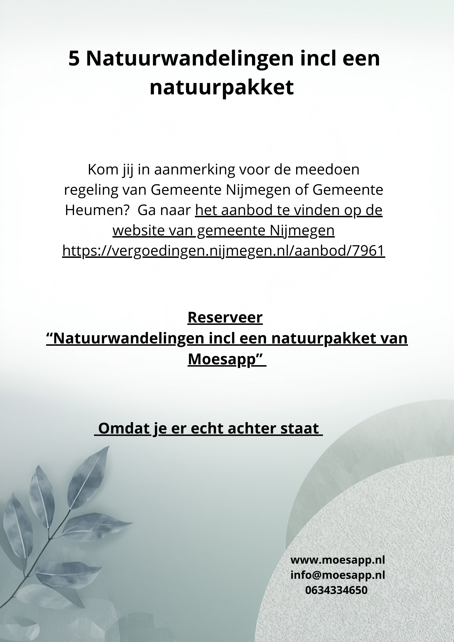Reserveer natuurwandelingen incl een natuurpakket van MoesApp. Zodra wij reservering hebben ontvangen nemen wij contact met je op.